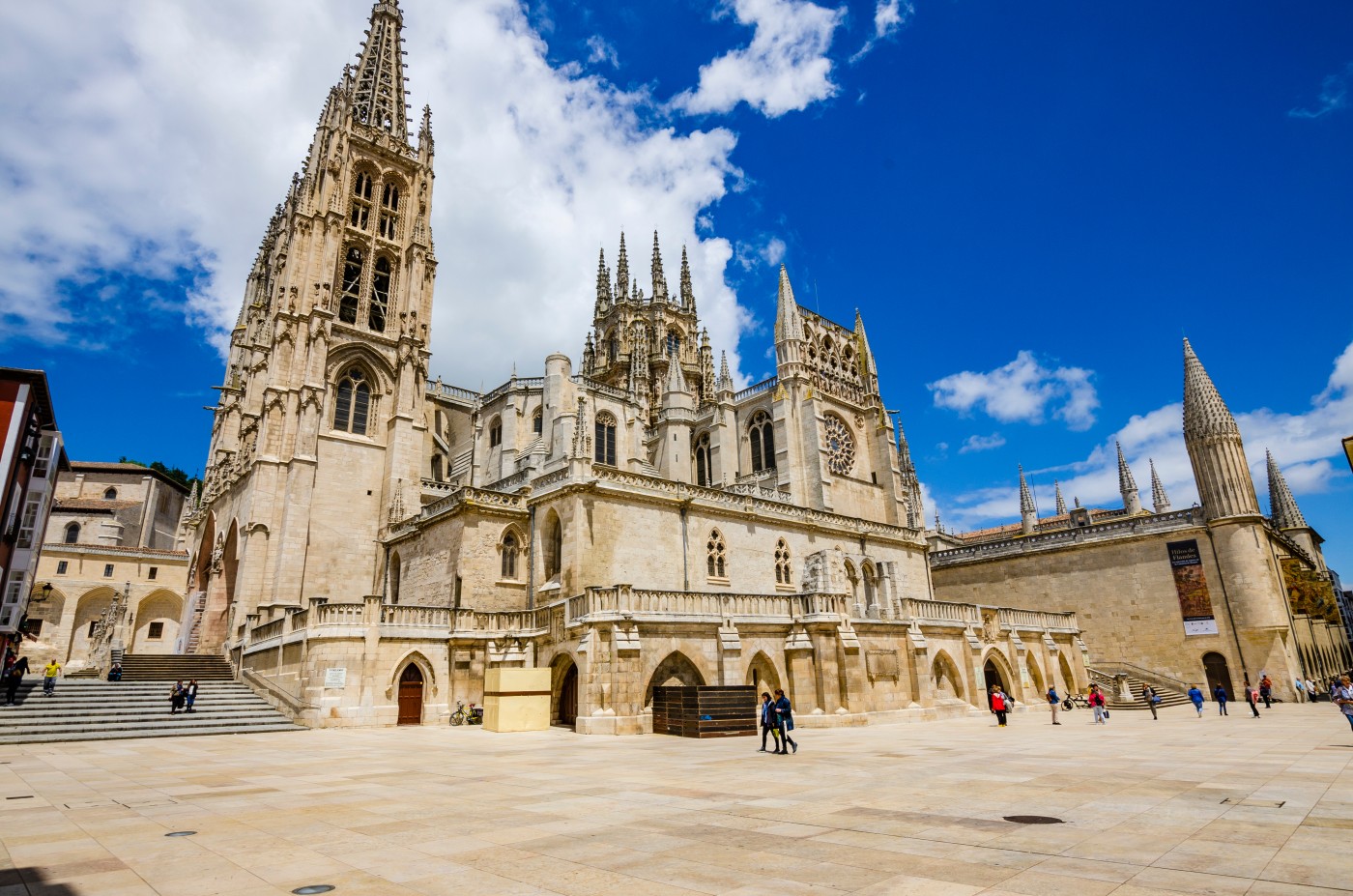 L’après-midi, vous ferez route pour Burgos. Vous arriverez à Burgos pour un tour pédestre guidé de la ville, avec son architecture médiévale intacte. Son monument le plus emblématique est la cathédrale gothique française Sainte-Marie, dont les 3 portes principales sont surmontées de clochers ouvragés (vue extérieure).